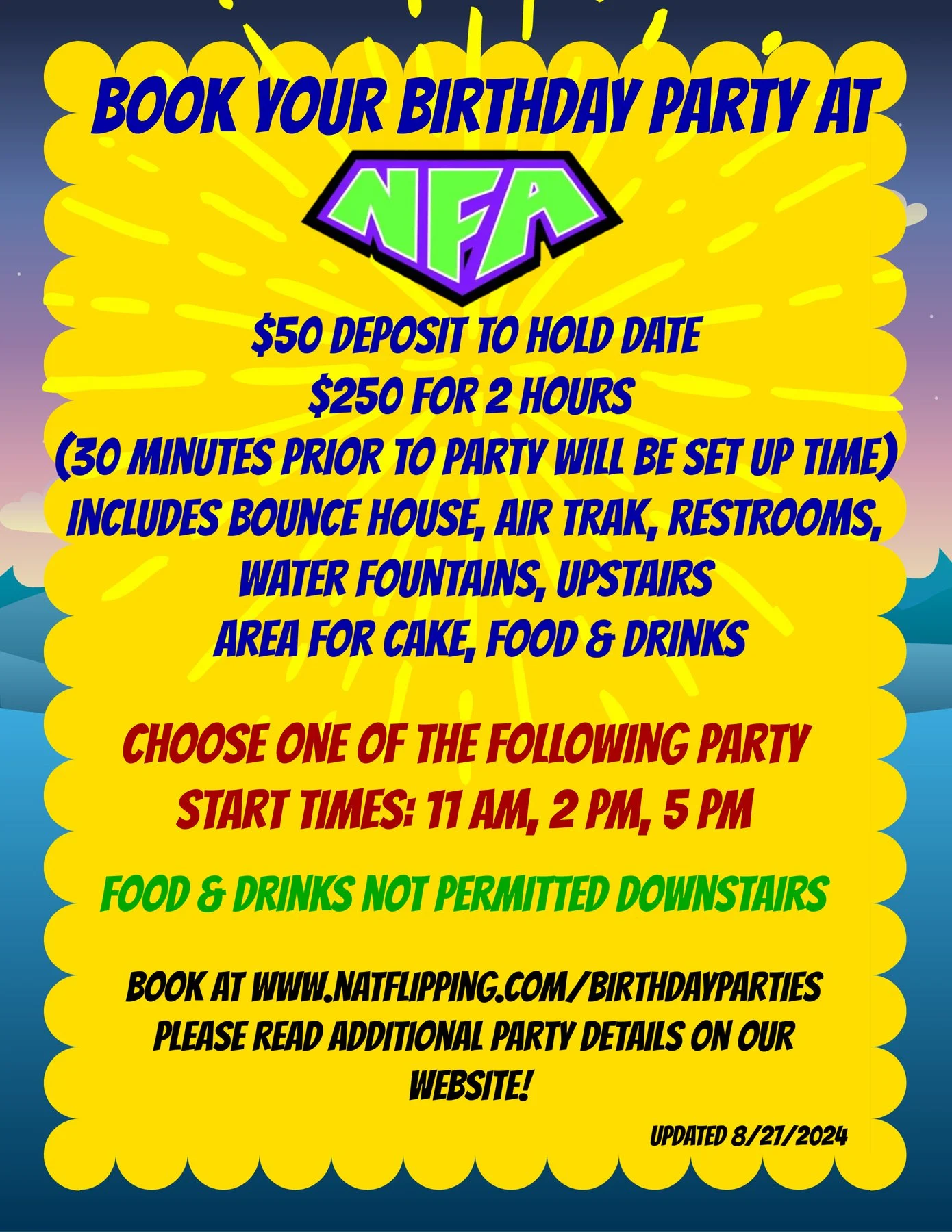 Book your birthday party below. Keep scrolling to see birthday party details!